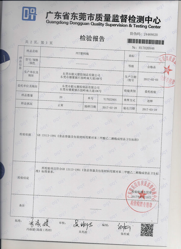- 先后取得了食品包裝生產許可,ISO22000等生產資質。車間為封閉式的潔凈車間,引進多臺自動化吹瓶設備,大大提高了生產效率和產品的優質率。